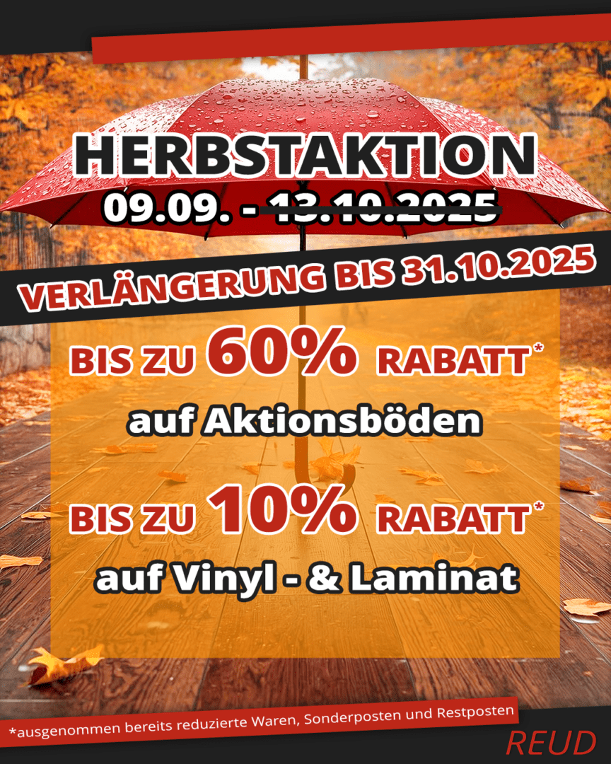 Sommeraktion 2025: Vinylboden & Laminatboden günstig kaufen bei REUD Die Sommeraktion 2025 von REUD bietet Ihnen starke Rabatte auf ausgewählte Vinylböden, Laminatböden und Designbodenbeläge. Vom 02.06. bis 30.06.2025 sichern Sie sich hochwertige...